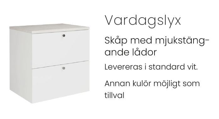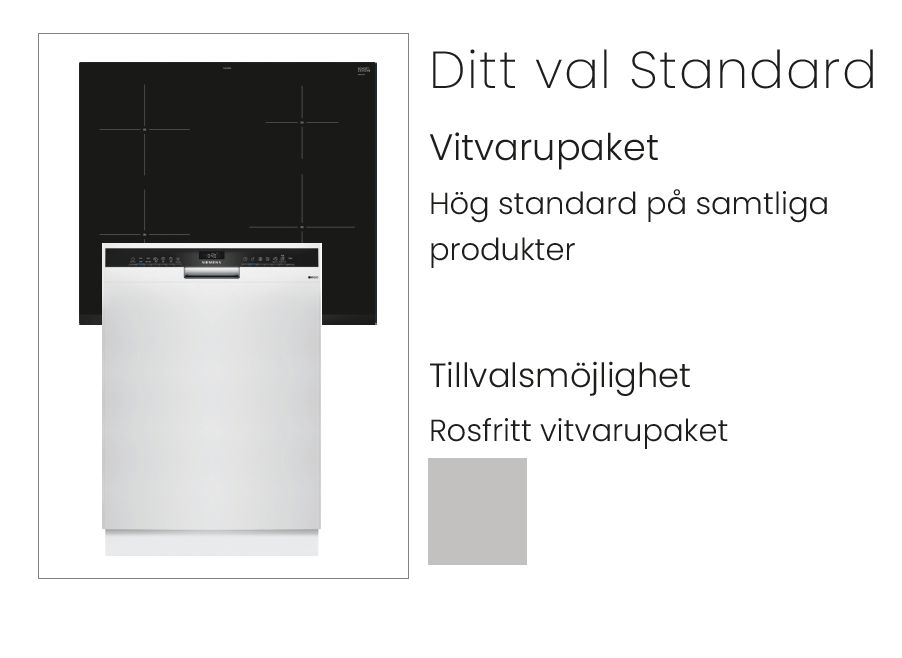 Du har i ditt avtal valt standard, men har fortfarande möjlighet att uppgradera till vardagslyx om duvill. Kontakta i så fall din säljare för aktuellt pris och uppgradering.
