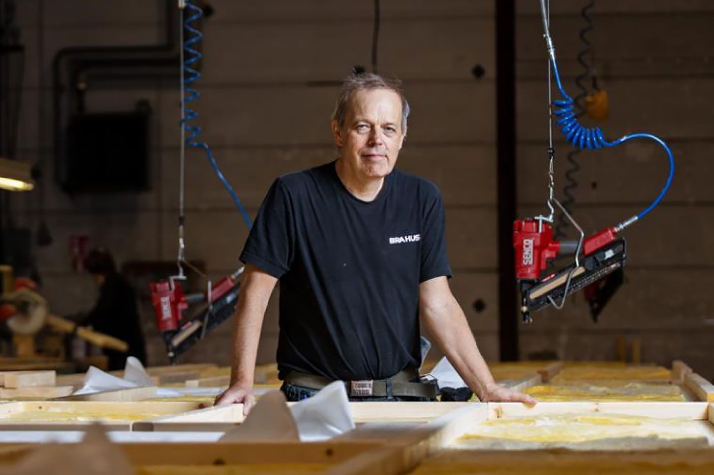 Assar Einarsson har jobbat med hus i över 30 år, och det märks. Han började i skogen redan 1980 och har sedan dess haft olika roller på Bra Hus – från sågverket till husfabriken. I dag är han en av dem som bygger väggar och gavelspetsar, men mest av allt uppskattar han människorna omkring sig: